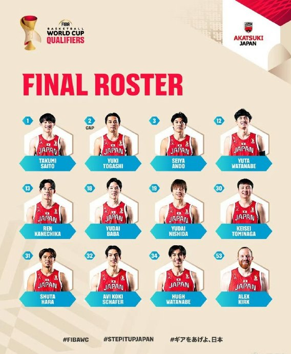 尽管霍金森缺席,日本队仍派出NBA经验丰富的锋线核心渡边雄太。作为球队精神领袖和外线防守核心,他的回归增强了日本侧翼的对抗强度与投射威胁。此外,后场核心马场雄大、西田优大及齐藤拓实等主力均首发出战,延续了日本队惯用的快速转换和三分投射体系。
