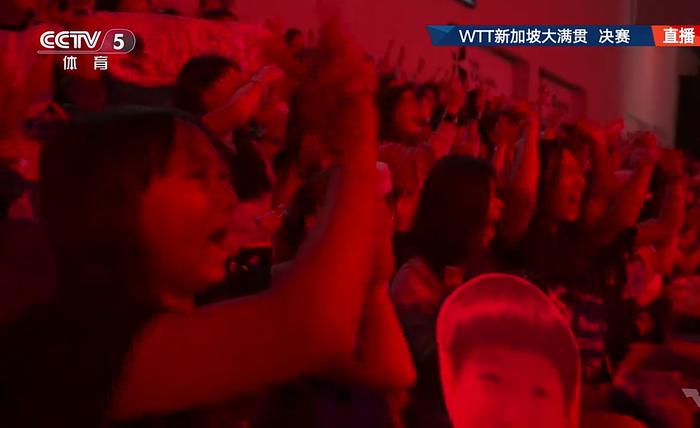 值得一提的是,比赛从第一局开始,现场陷入了一片嘈杂的氛围,观众几乎一边倒支持孙颖莎。每当孙颖莎得一分时,现场观众瞬间沸腾,随后又高声呐喊“孙颖莎加油”,让部分现场犹如震耳欲聋一样受到影响,也使得就连观看视频直播的观众也感到不舒适。