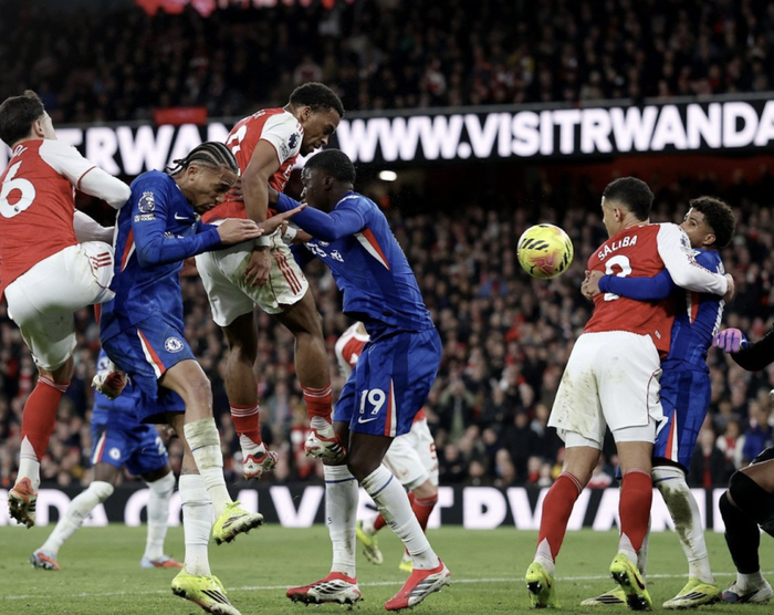 上轮联赛结束后,阿森纳只领先第二名曼城2分,优势很小。要想保住榜首的位置,阿森纳此役就必须在酋长球场掀翻来势汹汹的切尔西。第21分钟,阿森纳利用其最擅长的角球战术破门,萨利巴头球破门,1-0。