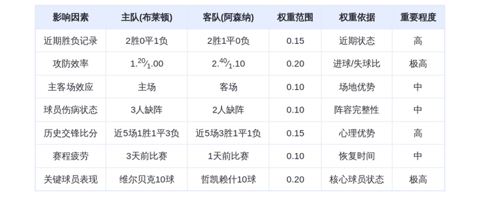 布莱顿近3场:2胜0平1负,进4球失3球阿森纳近3场:2胜1平0负,进8球失4球