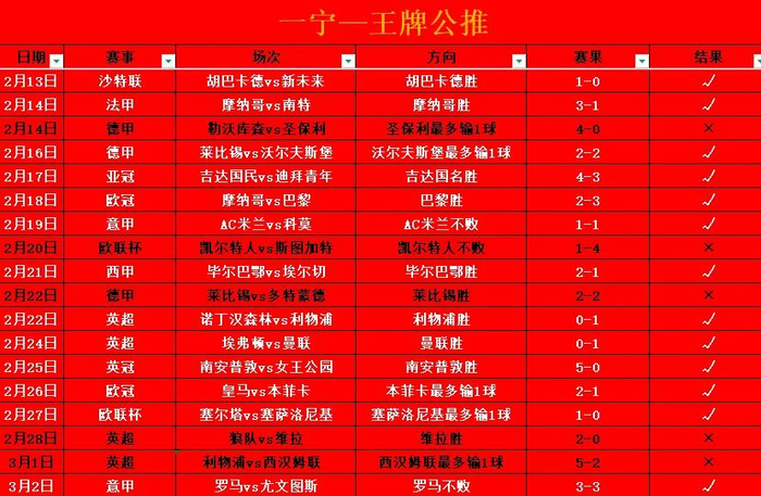 昨天的比赛整体12中8,私厨11中7,公推拿下,对于外面的朋友就有些难受,毕竟有些场次是赛果握手。强者自强,指的是各球队,也是自勉,相信里里外外都能有不错的成绩。老朋友查看下没有拿下的赛事,后续也会更新新内容。