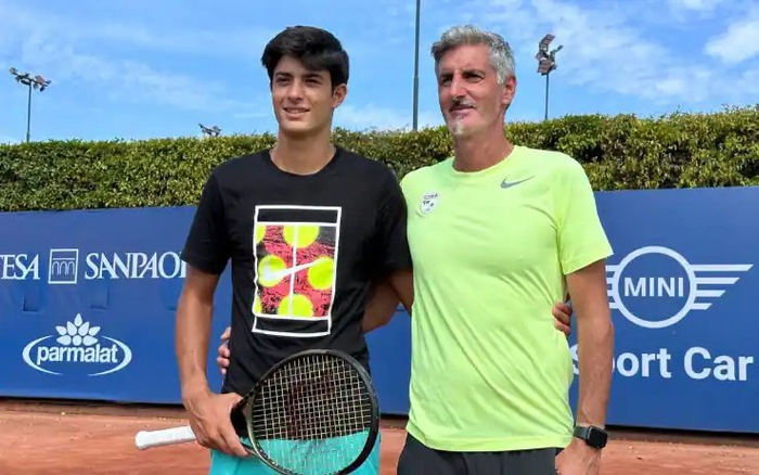 这位网球选手就是意大利人奇纳,2024年9月,他拿到了职业生涯首个希望赛冠军。那年的11月,奇纳在ATP CH75松山挑战赛上连胜两场,打进职业生涯首个挑战赛八强,引起了很多网友的注意。
