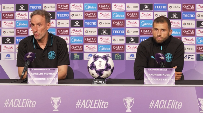 雷速体育3月2日讯 墨尔本城将在亚冠精英赛1/8决赛首回合主场迎战来自泰超的武里南联,赛前,球队主帅维德马和球员库恩出席了新闻发布会,展望了首回合比赛的前景。