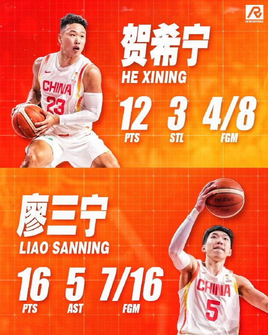 2026年2月26日的中日之战堪称转折点之战。面对客场压力与判罚挑战,贺希宁在上半场受挫后下半场爆发,贡献12分3抢断,用强硬的防守和关键得分撕开日本防线;廖三宁则以16分5助攻的全面数据串联攻防,二人合力诠释了“集体韧劲”的价值。几天后对阵中国台北,贺希宁延续状态再取10分,其稳定的输出能力被评价为“打出外援水平”。这场关键逆转不仅是比分上的翻盘,更标志着以贺希宁、廖三宁为代表的新生代球员正式接过攻坚重任,证明他们能在高压国际赛场扛起大旗。