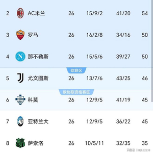 随着意甲26轮战罢,看看积分榜,国米10分领跑,争四混战白热化!
