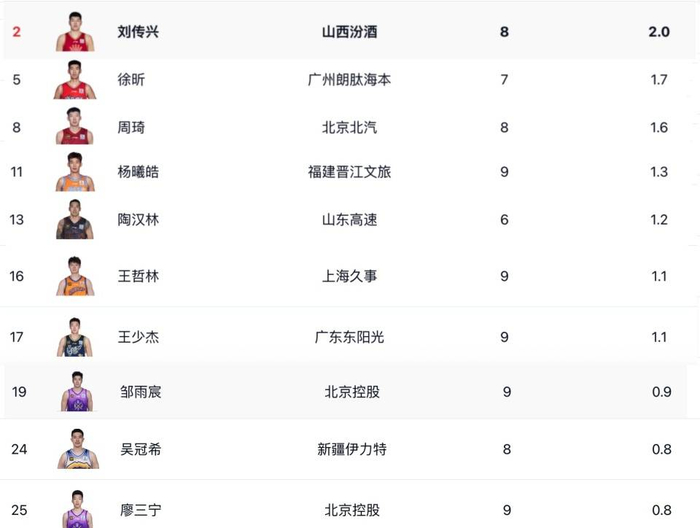 更令人惊喜的是,在通常由内线球员主导的盖帽榜上,除了刘传兴以场均2.0次盖帽位居本土第一外,廖三宁也赫然在列。这位身高并不突出的控卫,凭借着惊人的防守积极性和弹跳预判,位列盖帽榜前十。这一反常识的数据不仅佐证了廖三宁的全面性,也从侧面反映出CBA防守端的一种新常态:位置模糊化,小个子球员必须付出加倍的努力去弥补防守漏洞。