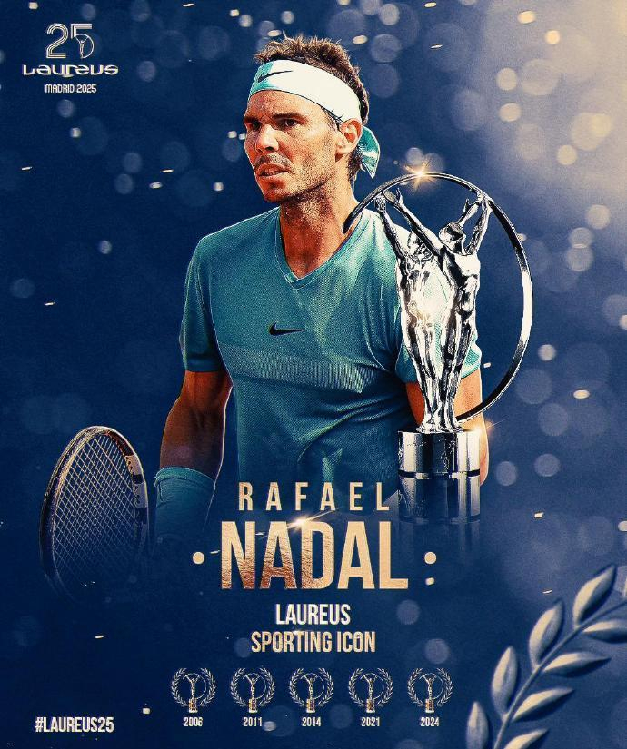 此外,已经退役的纳达尔拿到了体育偶像奖,至此对于前西班牙网坛名将来说,便成为唯一一位完成劳伦斯世界体育奖大满贯的运动员(年度突破、最佳复出、最佳男运动员、体育公益奖、体育传奇奖)。