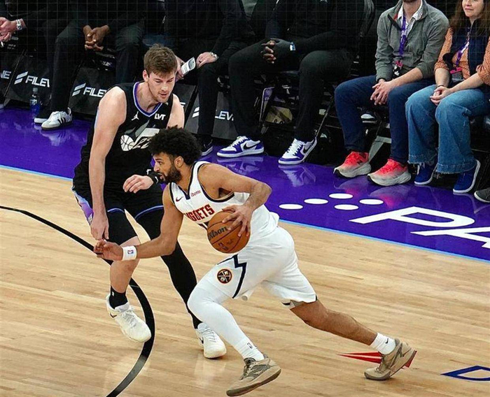 然而,爵士为此付出了惨痛的代价。 他们重兵囤积内线,外线便出现了巨大的防守真空。 贾马尔·穆雷,这位掘金队的二当家,抓住了这个千载难逢的机会。 第三节,他打满了12分钟,三分线外7次出手命中5球,单节狂轰18分。 他的每一次出手都像一把精准的手术刀,切割着爵士的防线。