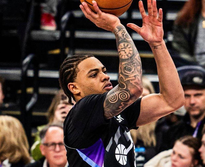 与掘金双星的星光熠熠相比,爵士队的基扬特·乔治上演了一出完美的“孤胆英雄”悲剧。 在马尔卡宁因伤缺阵的情况下,这位22岁的后卫独自扛起了球队的进攻大旗。 面对掘金的重点盯防,他全场22投14中,三分球9投4中,砍下36分,还贡献了4次抢断。