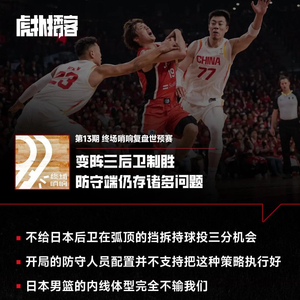 终场哨响最新一期正式播出,本期节目邀请到了CBA数据官网的总设计师徐墨老师来为我们拆解分析一下这两场比赛。首先是对阵日本的比赛开局阶段:我们坚决不给日本后卫在弧顶的挡拆持球投三分机会。