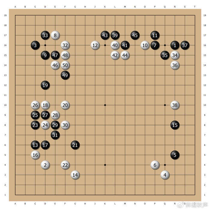 右下黑25点入,到39的定型黑棋获得安定,许家元实空领先。