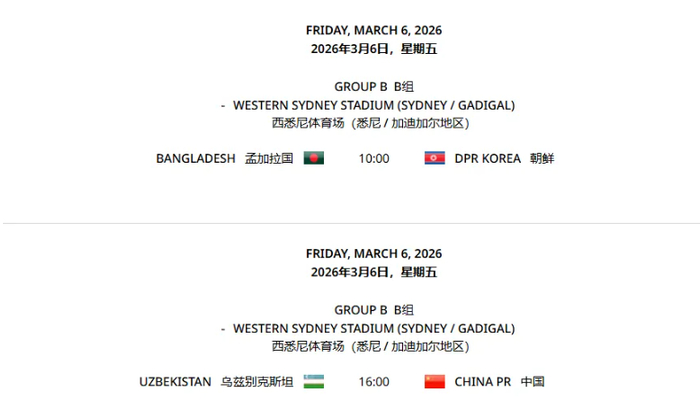 第三天是朝鲜女足VS乌兹别克斯坦女足、中国女足VS孟加拉国女足。