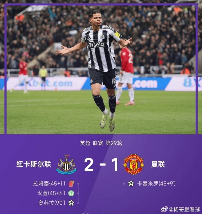 2. 替补奇兵改写历史:前锋奥苏拉替补登场仅3次触球便完成绝杀,成为英超史上首位90分钟替补绝杀曼联的球员。纽卡借反击将曼联压上后的边路空档利用到极致,彰显埃迪·豪的换人胆识。