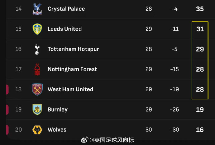 狼队和伯恩利已经基本确定降级,最后一个降级名额,就从上面提到的四支球队当中产生。站在目前这个时间点,你觉得哪队降级的可能性最大的呢?#英超联赛#