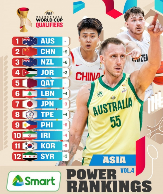 FIBA官方公布最新一期亚大区实力榜,澳大利亚男篮继续高居榜首,中国男篮凭借第二窗口期取得2连胜,尤其是连续两场完成两位数大逆转强势反弹升至第2名,而上一期仅排在第11名,日本男篮下滑到第7名,韩国男篮暴跌至第11名。