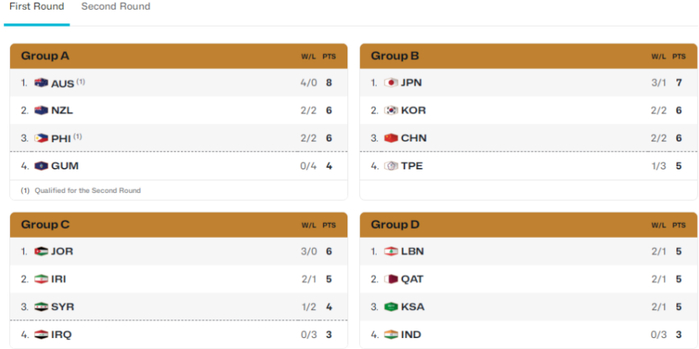 澳大利亚男篮继续高居榜首,他们已经4胜0负提前晋级,新西兰男篮升至第3名,日本男篮下滑至第7名,中国台北男篮上升至第8名,韩国男篮暴跌至第11名,而上一期韩国男篮高居第2名。