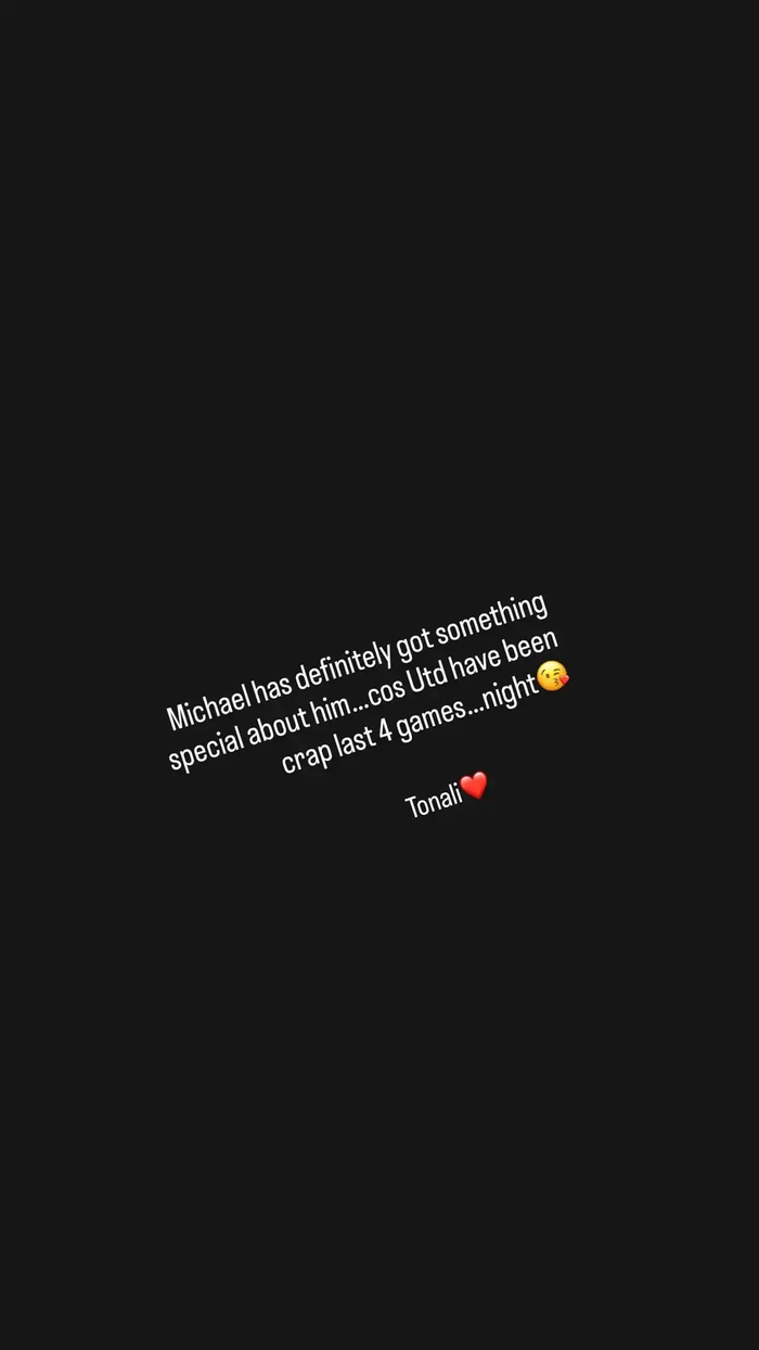 赛后,曼联名宿斯科尔斯更新社媒写道:“卡里克无疑是有点特别的东西的……毕竟,曼联最近4场踢得都很烂……晚安。托纳利❤️。”