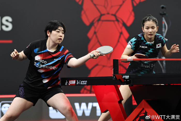 韩国女双组合金娜英/柳韩娜虽然在新加坡大满贯中止步八强,但她们还是以4020分领先20分的优势超越国乒组合王曼昱/蒯曼,升到女双世界第一,王曼昱/蒯曼排名第二。