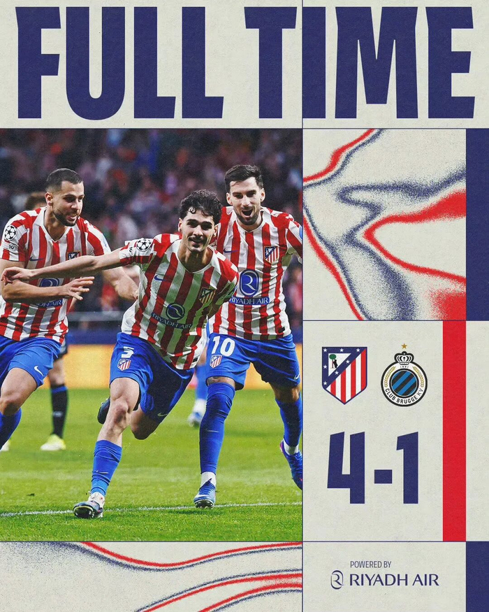 北京时间2月25日凌晨1点45分,马德里竞技在主场迎战布鲁日。上半场比赛,瑟洛特扛开防守队员低射,米尼奥莱出现低级失误将球漏进球门,随后布鲁日利用角球机会,由奥多涅斯后点头槌扳平比分。下半场比赛,卡多佐弧顶凌空轰出世界波为马竞再度取得比分领先,瑟洛特再下两城完成帽子戏法。最终,马德里竞技主场4比1大胜布鲁日,总比分7比4挺进淘汰赛。