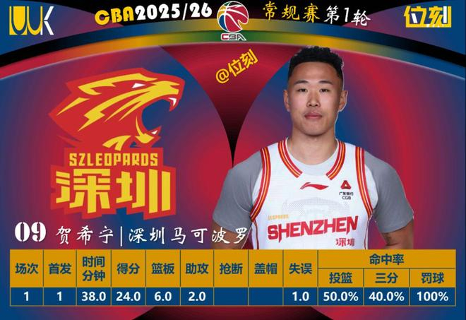 深圳被青岛末节翻盘,贺希宁最后一节只拿5分,球队最后6分钟一分未得。