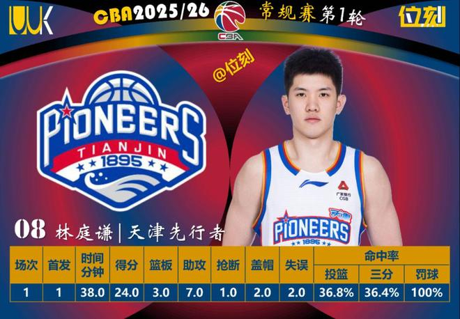 天津输给辽宁,林庭谦上半场手感好三分4中2拿14分,但下半场5投1中。