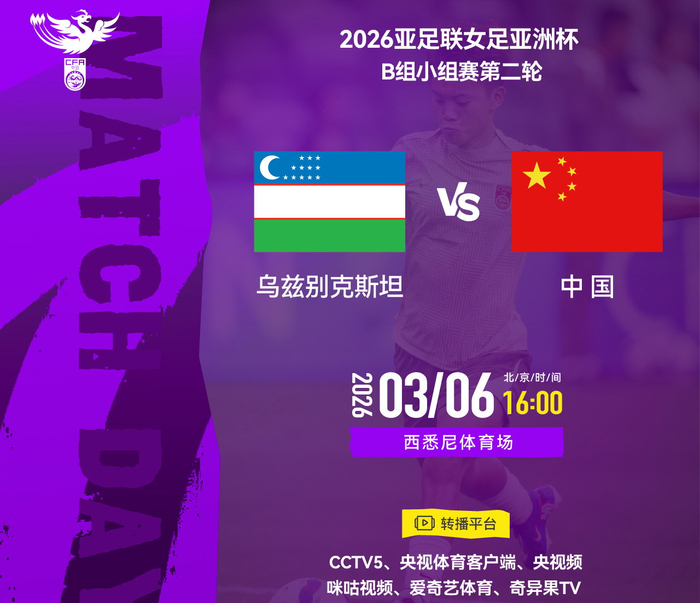 北京时间3月6日(今日)下午16时,2026年亚足联女足亚洲杯小组赛B组第二轮的一场比赛中,被誉为铿锵玫瑰的中国女足再次亮相澳大利亚西悉尼体育场,对阵来自中亚的乌兹别克斯坦女足。