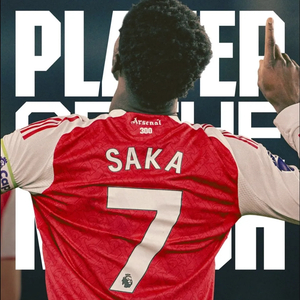 官方:萨卡被阿森纳球迷票选为了本场比赛最佳球员!