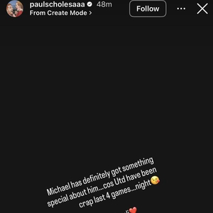 斯科尔斯在社交媒体发表动态,写道:“迈克尔(卡里克)身上肯定有某种特别之处,因为曼联最近四场比赛踢得简直烂透了……晚安托纳利❤️”