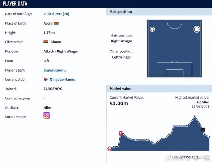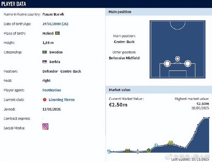 这名00后中卫身高达到1米88,曾经在2022年入选过瑞典国家队大名单,过去2年一直都是瑞典豪门球队哈马比的后防中坚,帮助球队连续赢下瑞典超级联赛冠军。他有着出色的制空能力,同时还能完成精准的拦截预判,上赛季在瑞典超级联赛场均贡献3.92次解围和赢下3.16次高球一对一,更是有着高达92.1%的传球成功率。