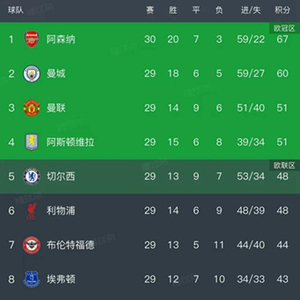 英超最新积分榜