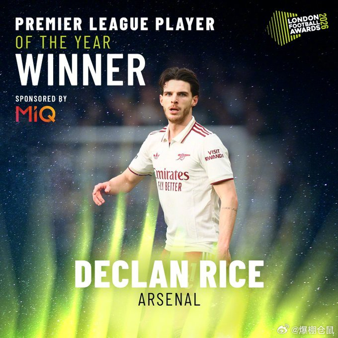 2026年3月6日,阿森纳中场核心赖斯荣膺伦敦足球奖“英超年度最佳球员”称号,这一荣誉不仅是对他个人表现的至高认可,更如同一针强心剂,为正处于英超争冠冲刺阶段的枪手注入了关键的精神动能。