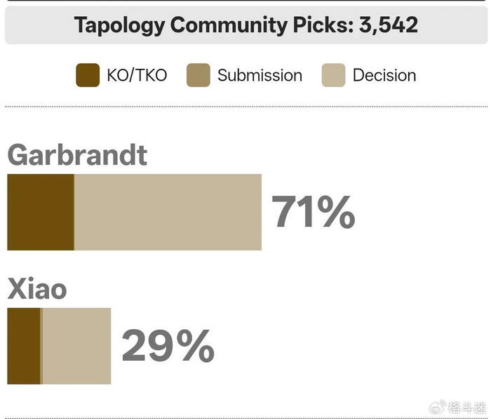 然而,有趣的是,赔率看衰加布兰特,但拳迷们却并不这么想。在TAPOLOGY的投票支持率中,高达71%的人看好加布兰特获胜,只有29%的人认为肖龙能赢。这种“盘口与民心”的背离,恰恰说明了本场比赛的悬念所在。
