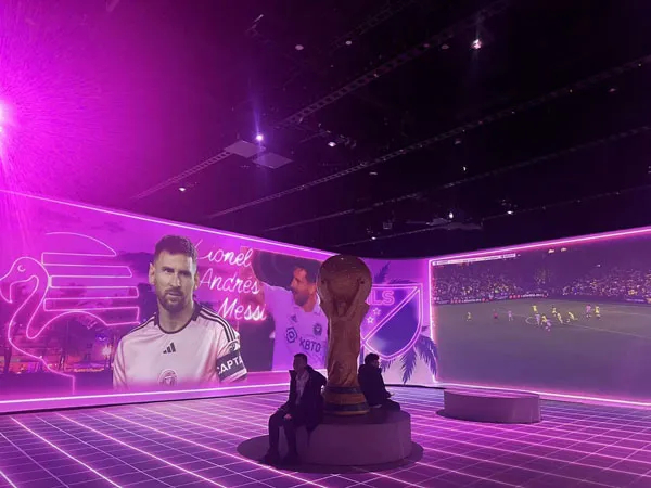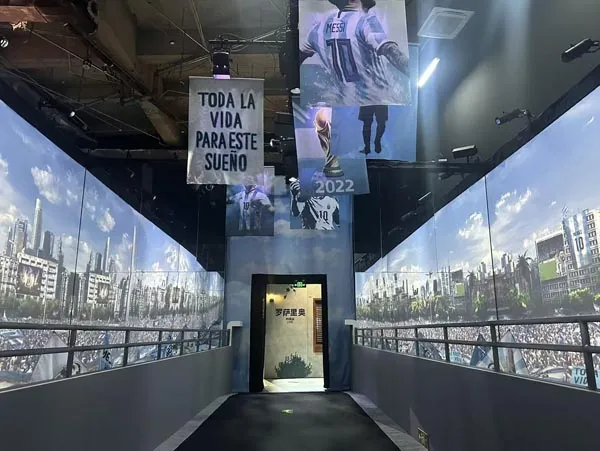 《梅西沉浸式体验展:梦想成真》不仅是一场足球主题展览,更是一段关于梦想与坚持的故事。展览总面积2000 平方米,设有包括“世界杯荣耀、互动训练、AI更衣室、AR合影与传承”等九大沉浸式体验区,结合人工智能技术、投影映射、360 度影像以及动态捕捉技术,回顾了梅西职业生涯的重要阶段,展现其专注、毅力、谦逊以及勇敢追梦的精神。观众将通过多维度的互动体验,身临其境去见证梅西从阿根廷罗萨里奥的少年时代出发,在面对挑战与困难时始终坚持信念,最终登上世界足球巅峰并赢得世界杯冠军的传奇历程。