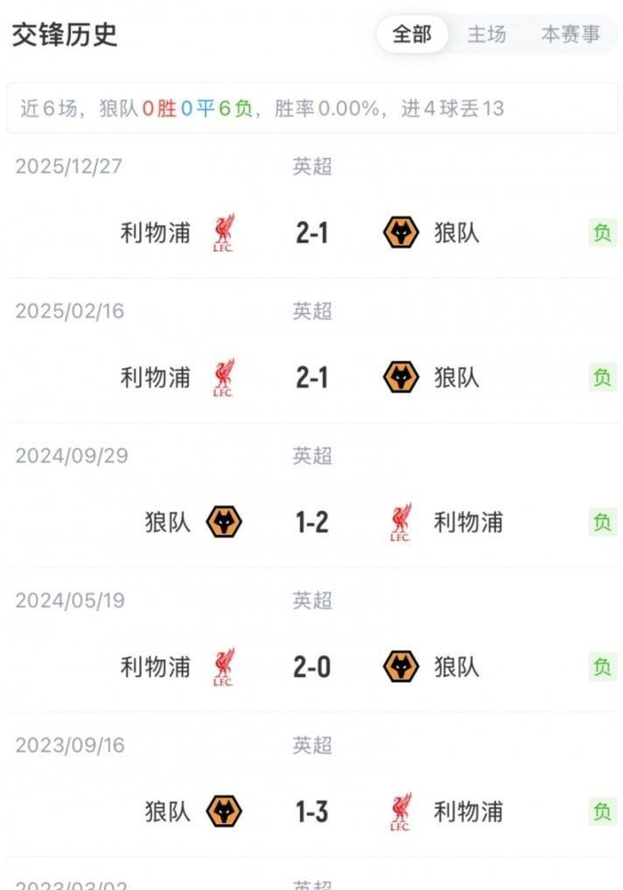 历史交锋数据对利物浦极为有利。在双方最近的18次英超交锋中,利物浦赢下了17场,唯一的失利还要追溯到2023年2月。客场方面,红军近10次做客莫利纽克斯球场也取得了8胜2负的战绩。本赛季首回合较量,利物浦就在主场2-1击败了狼队。这种长期一边倒的交锋记录,无疑会给狼队球员带来巨大的心理压力。
