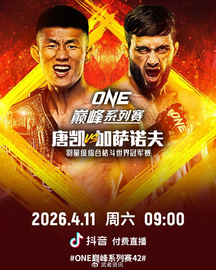 唐凯4月ONE冠军卫冕战对阵加萨诺夫