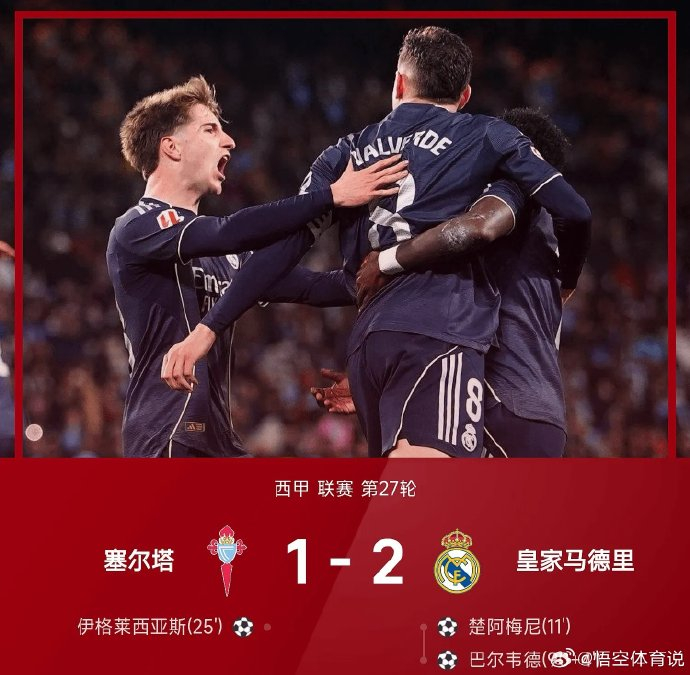 关于2026年3月7日维戈塞尔塔对阵皇家马德里的西甲赛事赛后讨论,目前仅公开提及比赛结果与关键意义的简要内容。 本场比赛的赛后讨论集中于以下核心信息: 1. 赛果与关键影响:皇家马德里在客场以2-1艰难战胜维戈塞尔塔。这场胜利被视为皇马展现“冠军底蕴”的标志,帮助球队在积分榜上紧咬领头羊巴塞罗那,延续争冠希望。 2. 比赛过程特点:塞尔塔在主场的顽强抵抗成为焦点。皇马凭借“最后时刻的奇迹进球”锁定胜局,突显比赛过程的激烈与戏剧性。