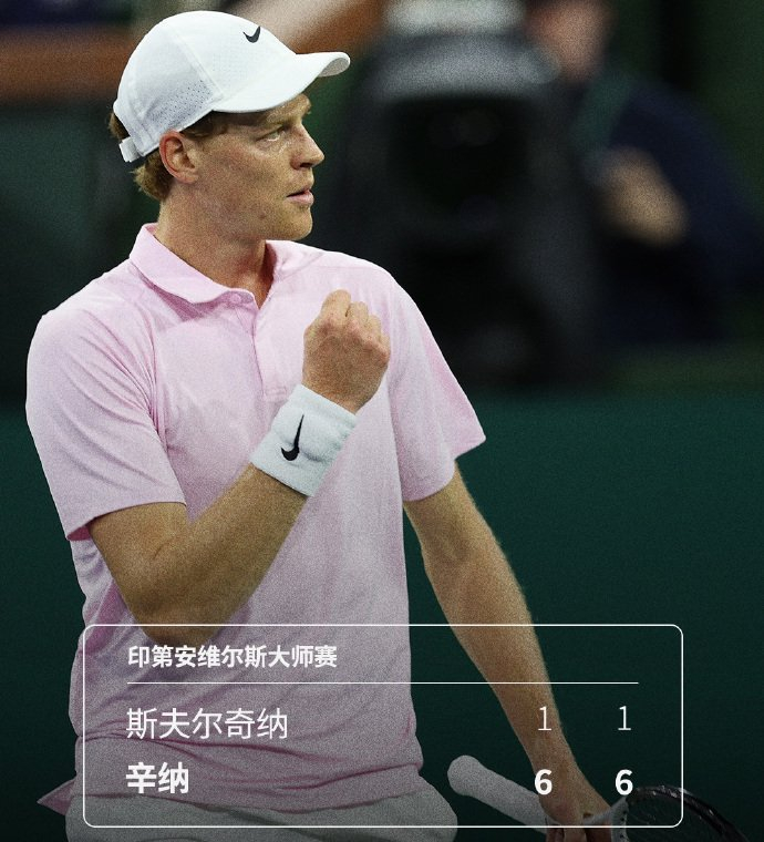 ATP1000印第安维尔斯大师赛:在单打第二轮一场焦点战中,首秀的2号种子、世界第二辛纳火力全开,仅用时64分钟,就以6-1 6-1送双油条横扫资格赛球员斯夫尔奇纳,强势晋级。第三轮,他将对阵沙波瓦洛夫和埃切维里之间的胜者。