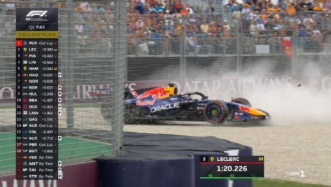 红旗!维斯塔潘在一号弯失控上墙,他将退出排位赛。