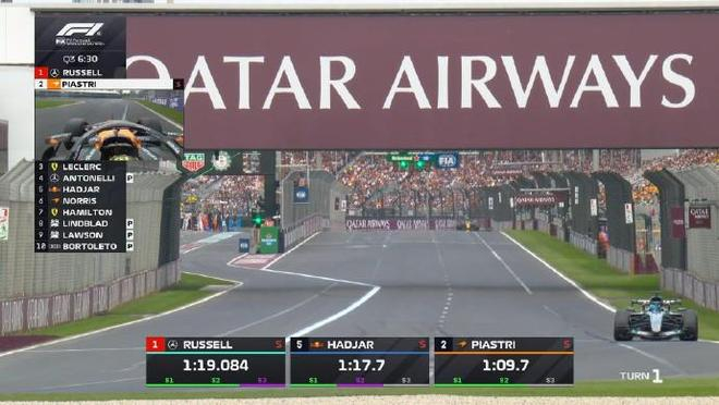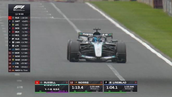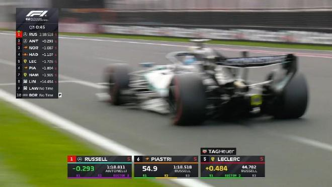 拉塞尔随后又刷新了最快圈速,领先皮亚斯特里和汉密尔顿来到P1。
