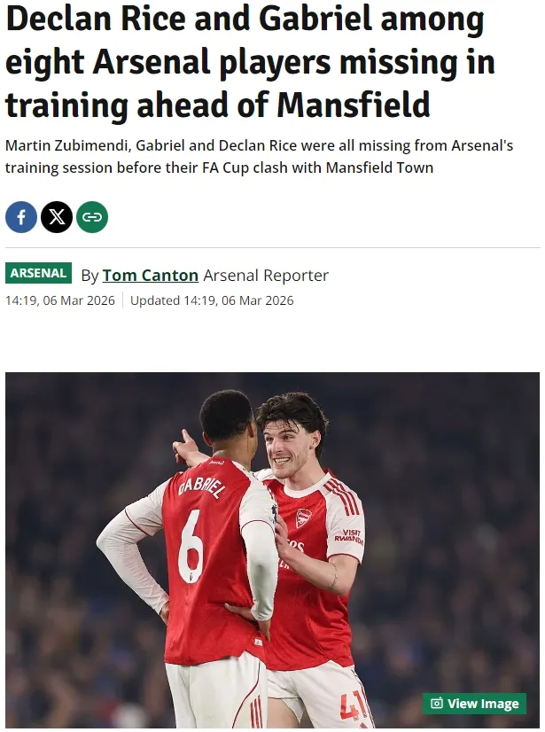 目前阿森纳已经完成了本场比赛前的最后一节训练课,不过有8名球员没有参加训练,他们是:廷贝尔、怀特、萨利巴、加布里埃尔、赖斯、祖比门迪、梅里诺和厄德高。