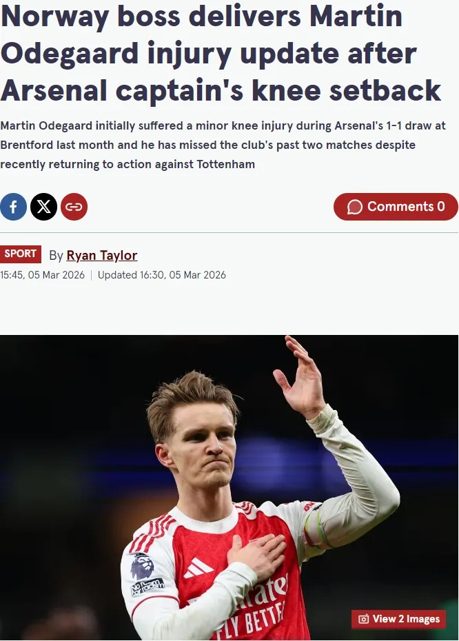 对我们这些关心世界杯的人来说,厄德高现在休息一段时间不算什么灾难,他会找回状态,并且在4-5月份为阿森纳发挥关键作用,甚至3月下旬就可以。”