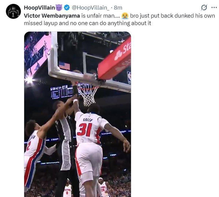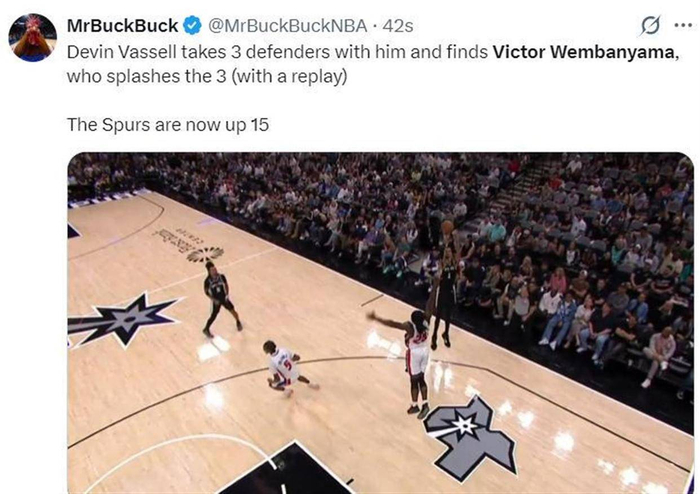 马刺近14战13胜,文班亚马再显顶级天赋刷纪录,38分16篮板5盖帽,外加4记三分球全场0失误_CBA_NBA_活塞