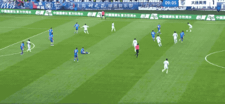 趁着上海申花防线注意力有些不集中,大连英博打出快速反击,薛庆浩在短短的1分钟内,做出两次神勇扑救。