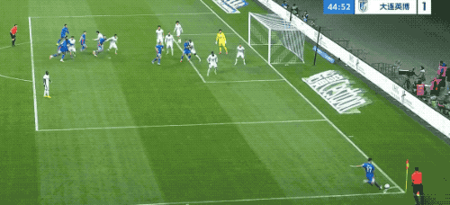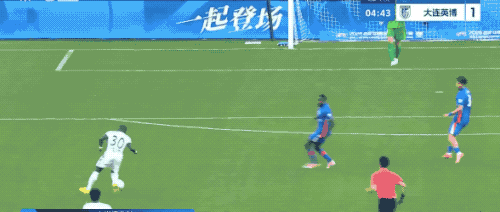 1分钟后,盖耶差点梅开二度,大连英博后场传球被抢断,盖耶冷静晃过后卫,但最后的射门稍稍高出。
