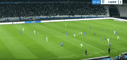 第87分钟,杨皓宇的传球打穿大连英博的防线,盖耶助攻拉唐梅开二度。