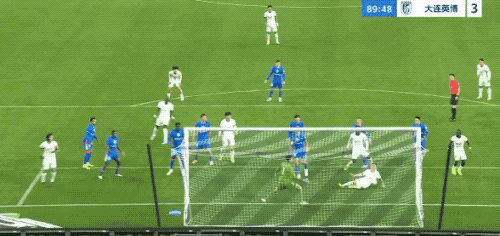 第90分钟,利用角球机会,冯劲为大连英博打进一球。