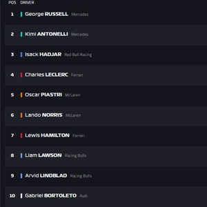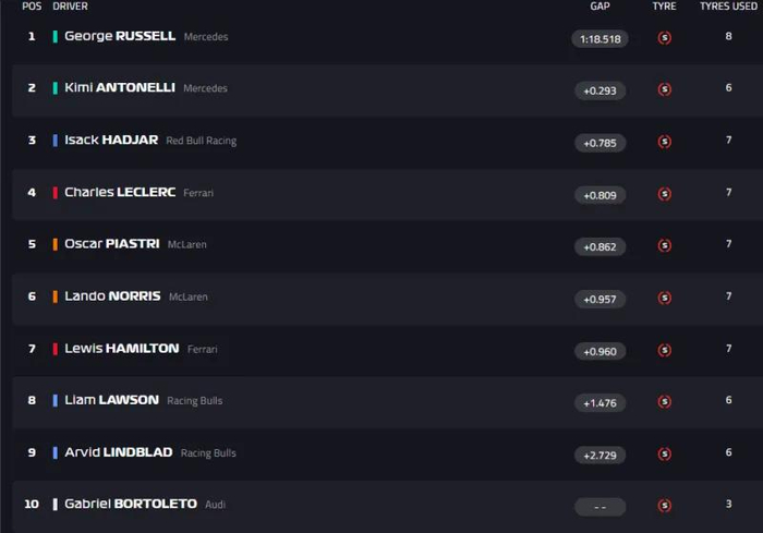 第四到第十名分别是:勒克莱尔、皮亚斯特里、诺里斯、汉密尔顿、劳森、林德布拉德、博托莱托。
