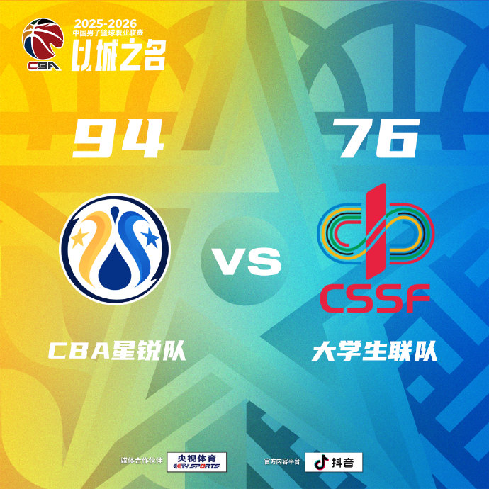 #CBA[超话]##2026CBA全明星周末# 星锐挑战赛 CBA星锐队 94-76 大学生联队