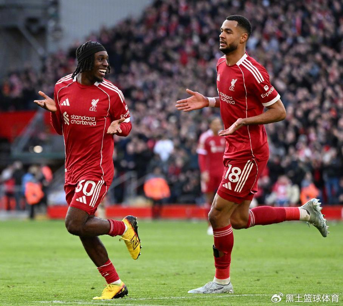 第43分钟利物浦获得右侧角球机会,埃基蒂克后点摆渡给了买卡利斯卡,后者直接凌空抽射建功,将比分改写为了3-0,利物浦也成为了曼联之后,第二支英超单场比赛上半场利用角球打进3球的球队。