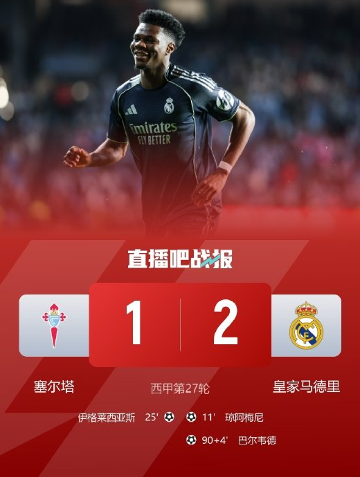 在2026年3月7日西甲第27轮皇马客战塞尔塔的补时第94分钟,队长巴尔韦德一记禁区外重炮轰门击中后卫身体折射入网,用一记戏剧性的“折射绝杀”帮助皇马2-1终结连败,而这粒关键进球的慢镜回放视频已被多家媒体多角度解析传播。